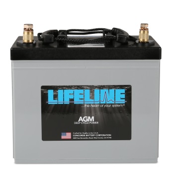 The Lifeline Deep Cycle batteries are high performance and Mil-Spec produced in the United States. Due to their quality construction, each has an industry-leading 2% per month self discharge rate at 77° F (25° C), compared to 10%+ for conventional batteries. They are Coast Guard approved, DOT Haz Mat Exempt, and have longer lifespans than conventional batteries. Each is rated after 15 cycles to 1.75 volts per cell and designed for charging amperages up to 250% of the rated Amp Hour Capacity due to low battery internal resistance.
