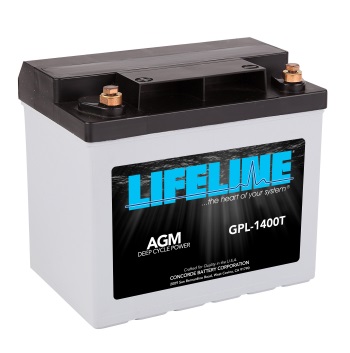 The GPL-1400T is a high performance, Mil-Spec, AGM battery, produced in the United States. It is Coast Guard approved, DOT Haz Mat Exempt, and has a longer lifespan than any conventional battery.