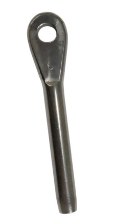 This fitting is designed to be machine swaged onto wire rope. They will not work with hand-crimp tools.