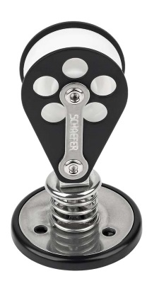 These blocks are excellent for fixed position halyard, sheet or control line fairleads. They swivel 360 degrees, tilt in all directions, and are supported by heavy-gauge stainless steel springs to prevent deck contact. The large-diameter Delrin® bases help distribute loads to a larger surface area than other small designs.