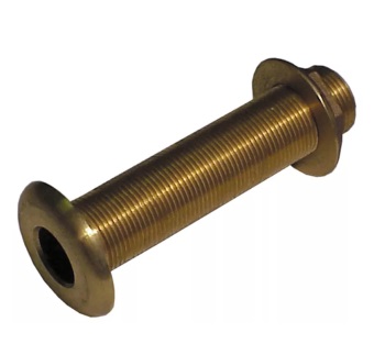 This thru-hull fitting with nut is cast in solid bronze and threaded per Nominal Pipe Size (NPS) - a U.S. standard for straight threads.