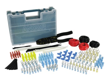 Comprehensive inventory of electrical connectors, terminals, disconnects, and other essential supplies all packed in a heavy-duty plastic box that opens on both sides.