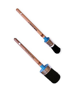 The round-shaped brush is excellent for trim or where cutting a fine line is required. The oval-shaped brush has similar qualities but provides a slower release of product, making it ideal for varnish.