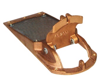 This bronze thru-hull strainer with a removable, perforated, stainless steel screen covers thru-hulls in a wide range of pipe sizes. The patented hinged-door permits access for easy thru-hull cleaning.