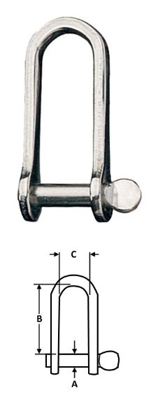 Long Dee Shackle Type 316 Stainless Steel Body and Pin