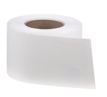 "Safety Walk" is a self-adhesive plastic film with rubber tread material and comes in 60-feet roll maximum. Order any length up to 60 feet, then custom cut in desired lengths to meet your walkway or step area requirements.