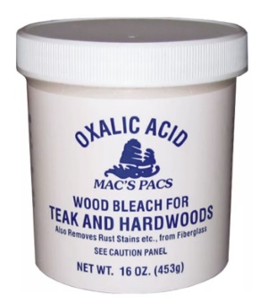 Wood Bleach - 1 lbs. Oxalic acid is commonly used as a wood bleach for teak and hardwoods. It also removes rust stains, etc., from fiberglass. Sold individually