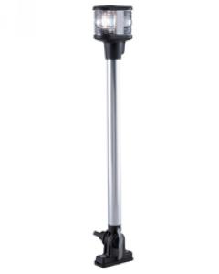 Combination white masthead and all-round white anchor light in black polymer and zinc alloy construction with fold-down aluminum pole.