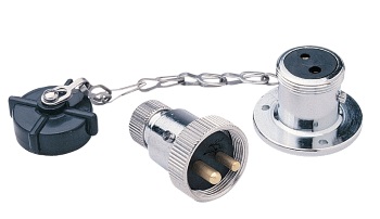 These moisture-proof connectors are designed for both interior or exterior installations. Each socket has screw-on cover attached by chain for protection when not in use.