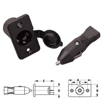 Complete cigarette lighter plug and socket made of stamped brass with injection-molded Nylon and ABS. Uses solder-on connections.
