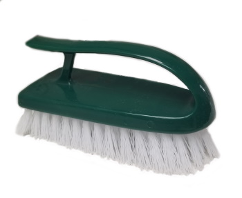 Extra tough brush with plastic fiber bristles and plastic "iron-grip" handle.