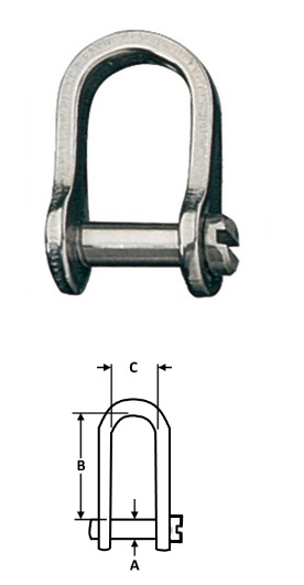 Slotted Pin Dee Shackle Type 316 Stainless Steel Body and Pin