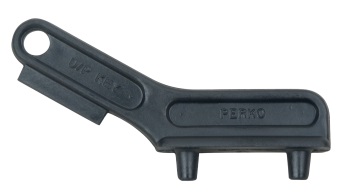 Spare Deck Plate Key This black polymer key with 1" spade on handle that fits many of the slot-type deck plate caps from 1" to 1-1/2" diameter. Lug distance center to center is 1-1/8". Mfg No. 12487-8DP