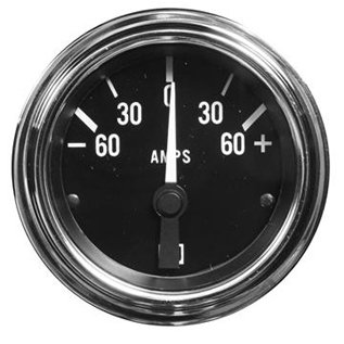 Model 82108 ammeter is offered from the Marine Deluxe0 instrument family of Stewart Warner gauges, which provides a comprehensive collection of matching electrical and mechanical gauges for a variety of applications. This family of instruments features brass housing, bracket and hardware to ensure corrosion resistance. The low-profile brass bezel has a chrome finish.