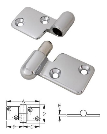 Precision construction features heavy 3/16" gauge forged brass for marine duty. Designed for applications where occasional removal of a cabinet door may be required without removing the hinge.