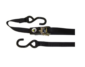 These marine tie-downs utilize weather-resistant, Nylon webbing with heavy-gauge, coated hooks and hardware. They also feature a quick-release and rapid-rachet mechanism for adjusting the length and tightening the strap.