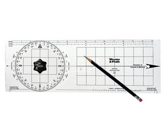 An updated version of the Breton and Portland Plotters, this is a versatile navigation tool. It can be used to lay off a course or a bearing, measure distance between any two points, plot a position on a chart from a given set of coordinates, or determine the coordinates of a position on a chart.